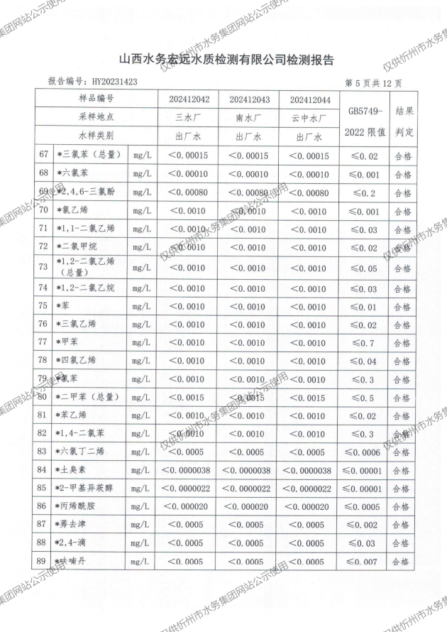 2024年忻州城區(qū)公共供水南水廠、三水廠、云中水廠出廠水97項(xiàng)水質(zhì)全分析