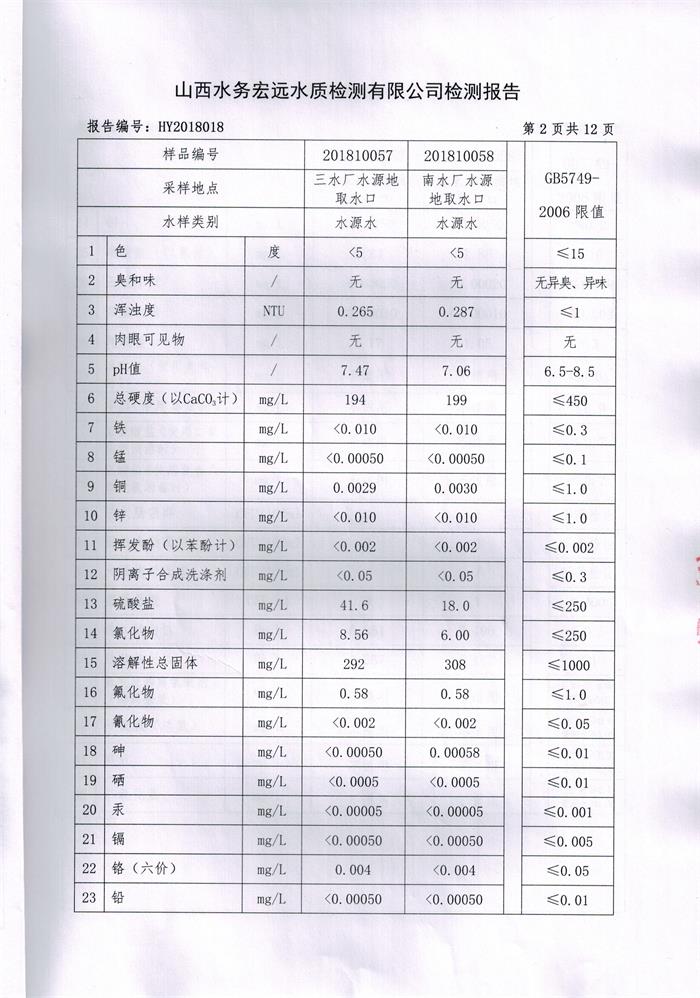忻州城區(qū)公共供水水源水、出廠水、管網(wǎng)水、管網(wǎng)末梢水2018年10月份水質(zhì)信息公示