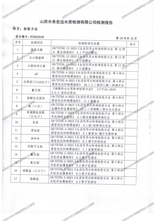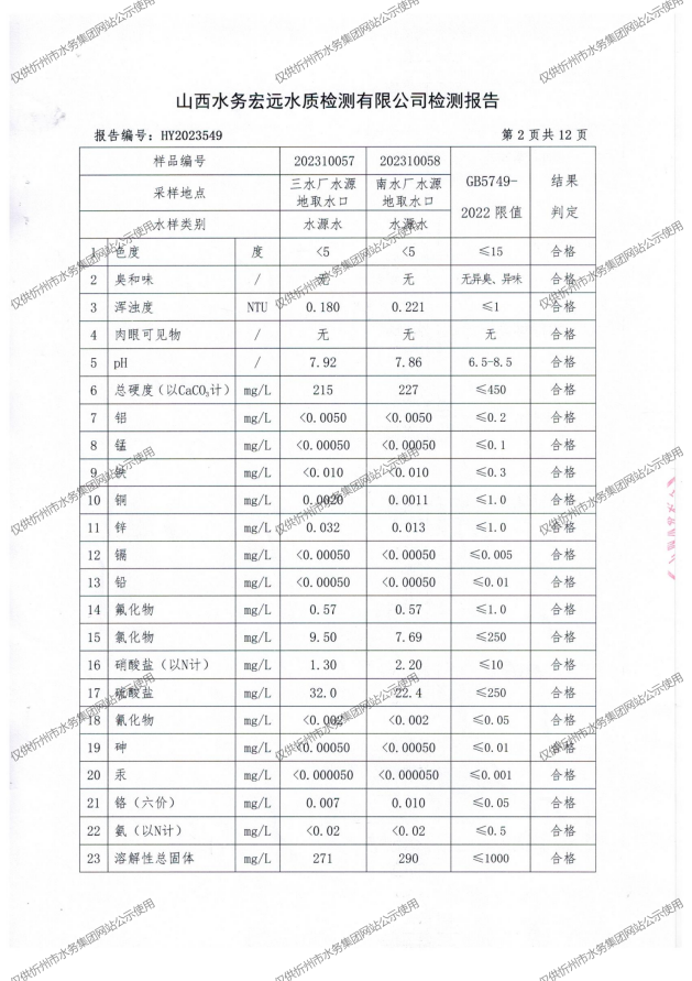 忻州城區(qū)公共供水水源水、出廠水、管網(wǎng)水、管網(wǎng)末梢水2023年10月份水質(zhì)信息公示